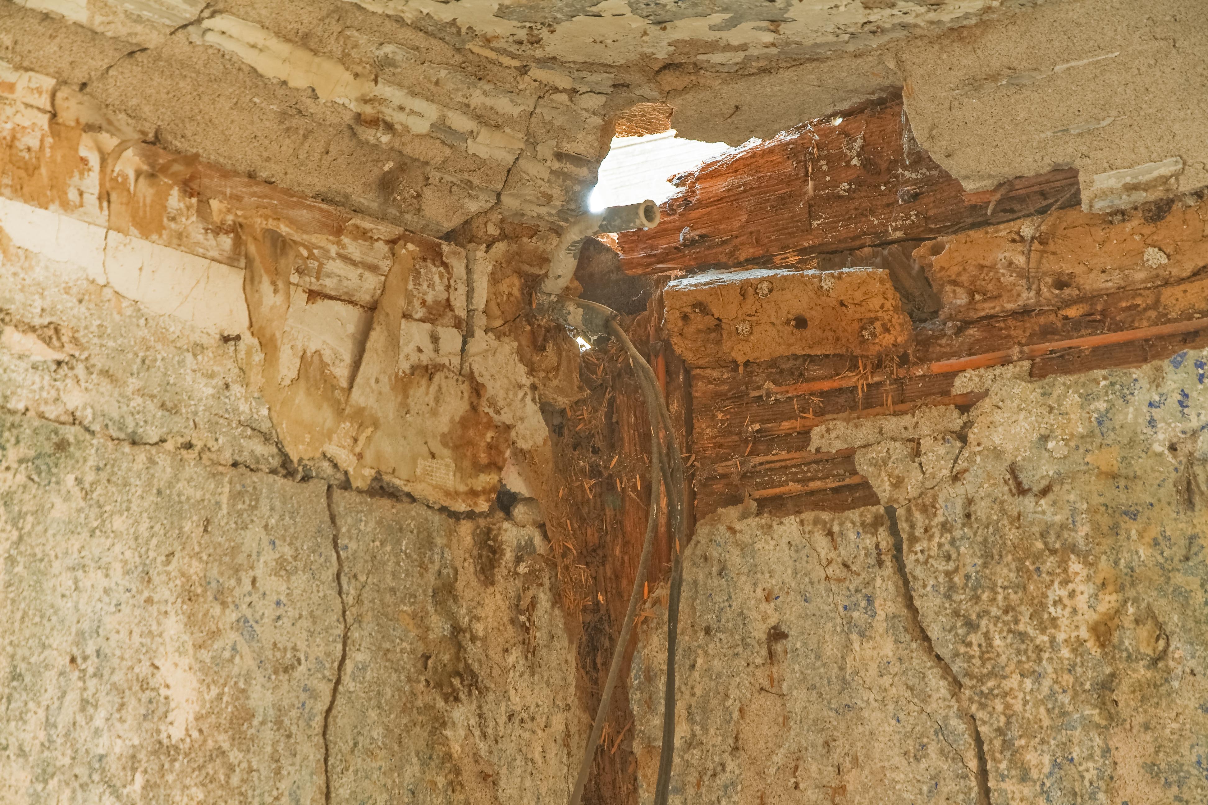In der 1. Etage war das vorhandene Fachwerk teilweise freigelegt. Erste Wasserschäden gaben Zeugnis vom bedenklichen Bauzustand und dass dringend Handlungsbedarf bestand, um weitere Schäden zu verhindern.