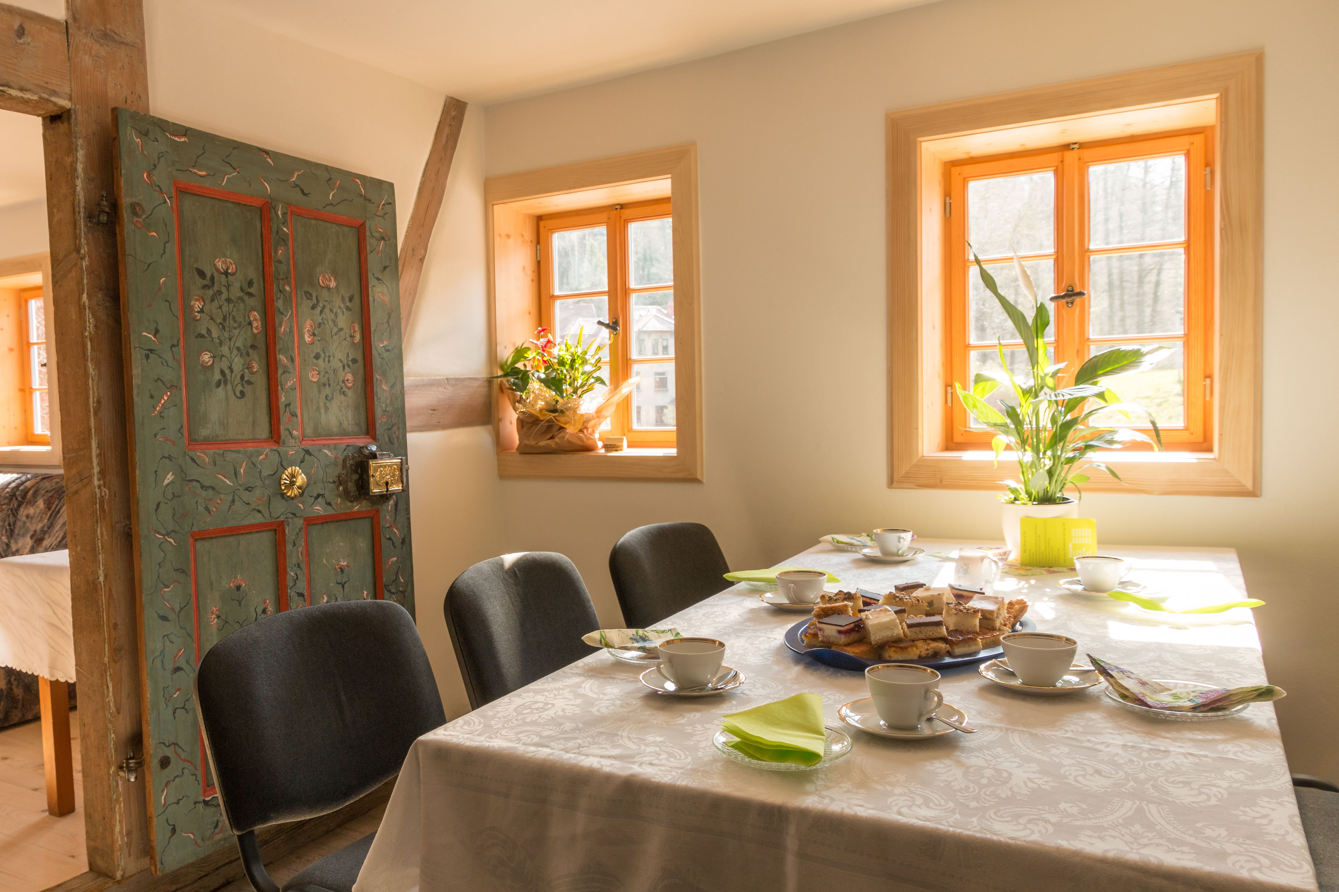 Die erste Etage verbindet auf besondere Weise den Erhalt historischer Bausubstanz mit ökologischer Bauweise und moderner Nutzung. Ziel aller Maßnahmen war es, den ursprünglichen Charakter des Hauses zu bewahren und gleichzeitig zeitgemäßen Komfort zu schaffen.