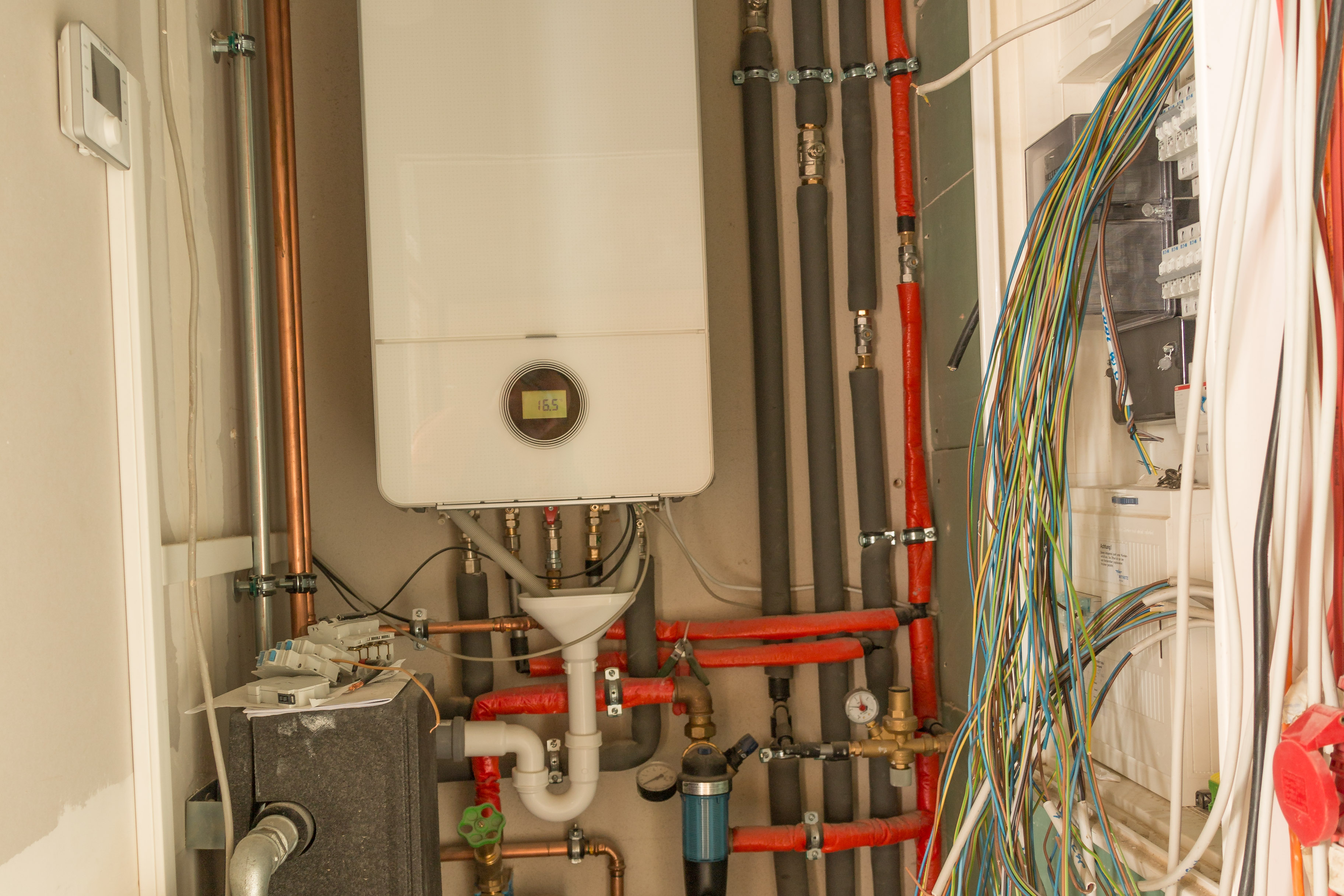 Zwischen der Küche und den Sanitärräumen befindet sich der Energieanschlussraum, der die technische Versorgung des Gebäudes sicherstellt.
